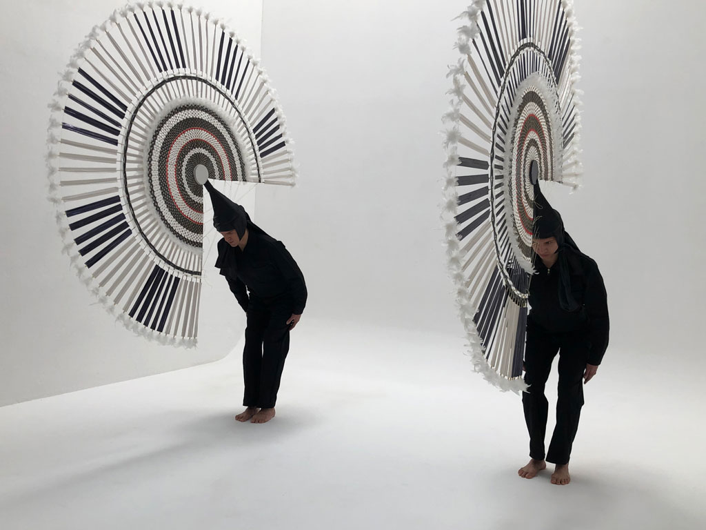 Con esta prevención ya podemos llegar a la sala 4 del MUAC para sumergirnos en la instalación “Reverencia”. En imágenes encontramos dos tocados tradicionales mexicanos, y en sonido e imagen nos asalta la grabación de la coreografía Danza de los quetzales. La propuesta de Tania es reinterpretar el significado del movimiento en la danza a partir de los elementos del penacho, cada uno de ellos cargado de toda una simbología. “La danza se centra en dos movimientos: la reverencia y el saludo a los cuatro puntos cardinales”. Al inclinarse los danzantes, reconocen su igualdad y celebran su diferencia. Esta es una constante del trabajo de Tania: artesanía, labor, tradición, sonido, sinestesia, ritmo y traducción.