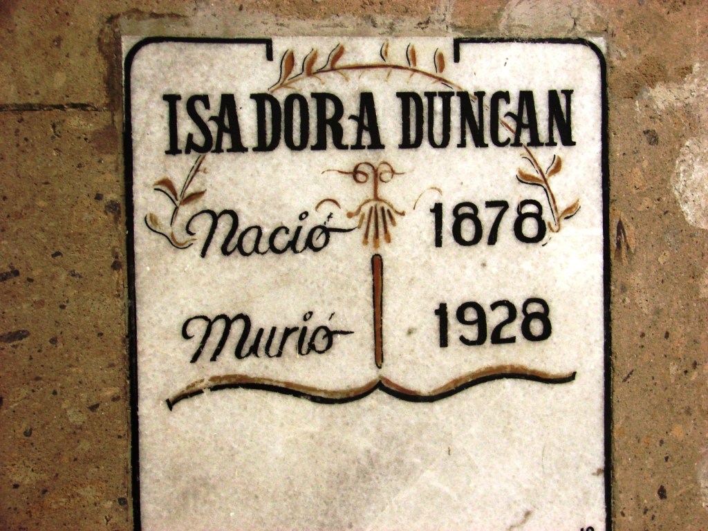 Ésta placa es una de las curiosidades del cementerio. La bailarina Isadora Duncan, quien revolucionó los esquemas del ballet a principios del siglo XX, nunca estuvo en México, la tumba está vacía. Dicen las consejas que el general Plutarco Elías Calles la amo en silencio y le hizo este homenaje.