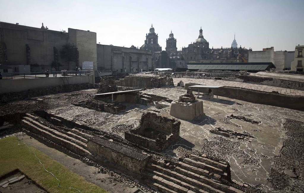 De acuerdo con los códices y los cronistas, este aspecto tuvo el Zócalo de la ciudad de México cuando llegaron los españoles. Aquí estuvo el centro religioso y político de los mexicas, los templos de Huizilopochtli (Dios de la Guerra), de Ehecatl (Dios del Viento) y de Tláloc (Dios de la lluvia).